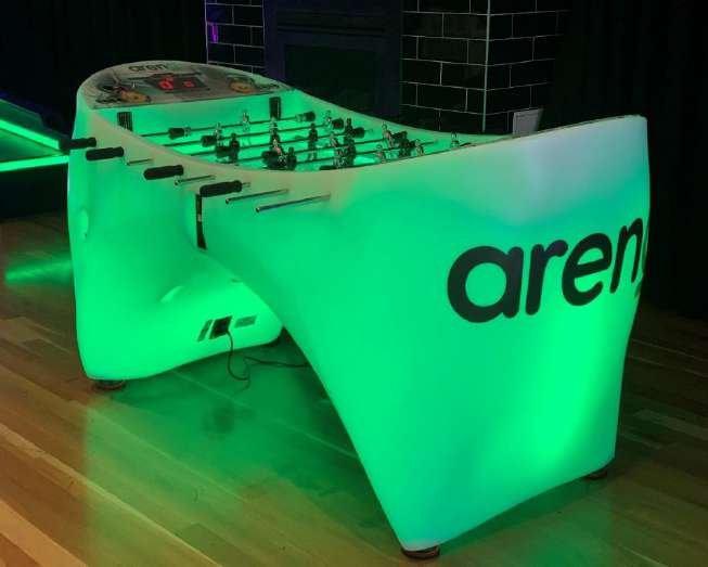 Soccer / Foosball Table is one of the most popular arcade games for hire, but this is at a wholenew level. The Arena 4 Player LED Table is guaranteed to have all your guests competing to bethe Foosball Champion. The Foosball Table is set up as a professional tournament modelincluding glass top and is set to free play for hours of Foosball fun!Great for Corporate Events, Pubs, Clubs & Private Parties.