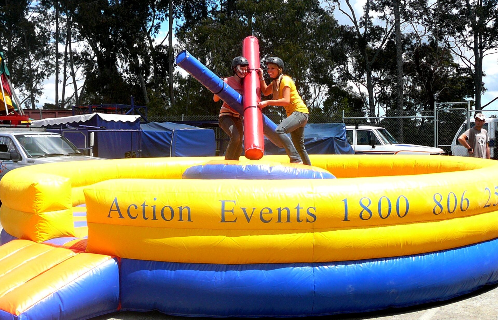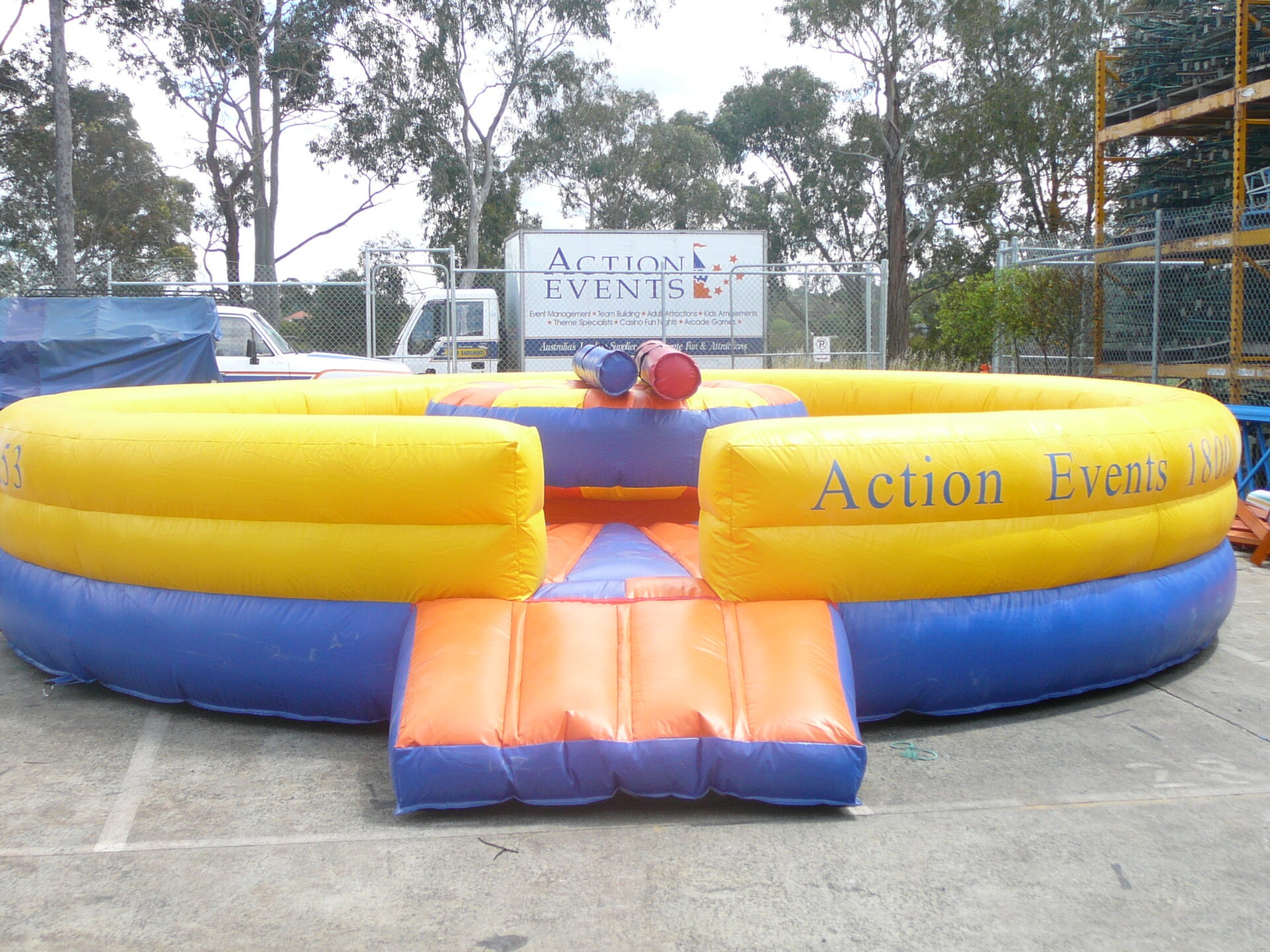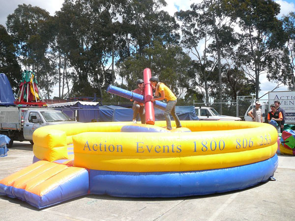 The Rock’em and Sock’em is a great battle game and entertaining for all who watch. If you have a competitive edge this is the attraction for you. Opponents have two challenges, staying on the rocking bubble, as well as battling your opponents using the foal filled gladiator jousting sticks.