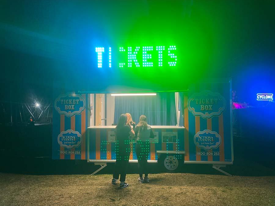 Enhance your event with our ticket box trailer! This eye-catching, LED light up trailer is perfect for larger events. Simplify your ticketing today.